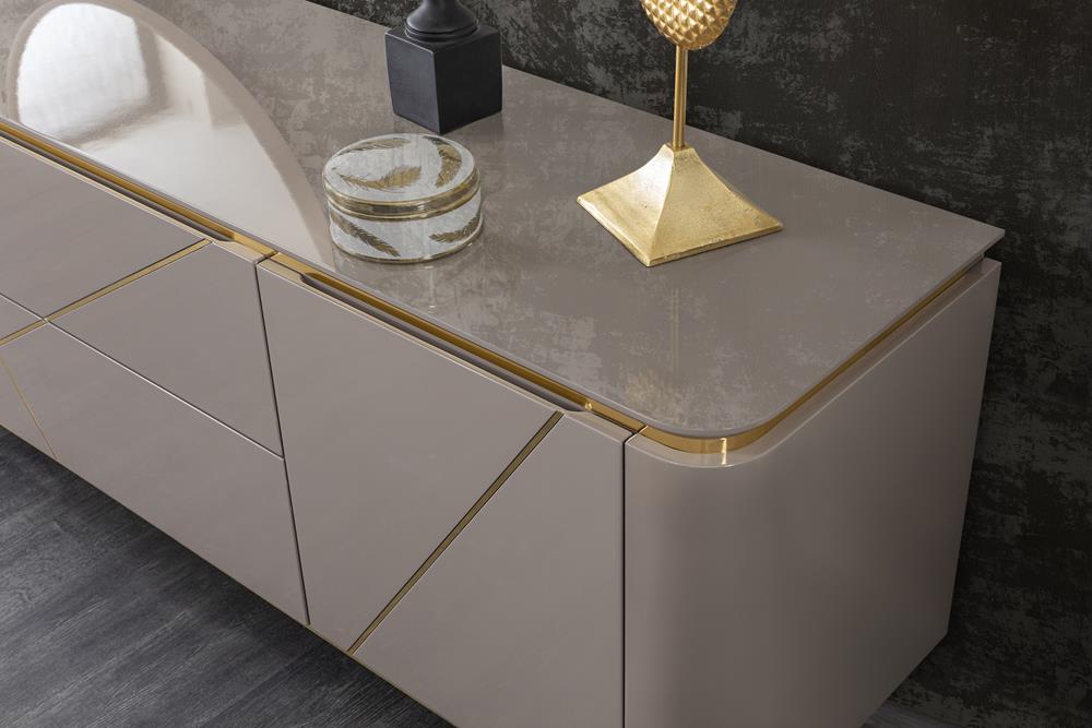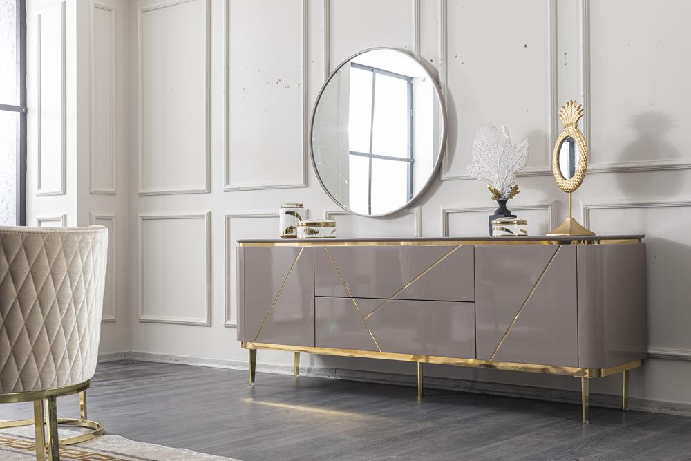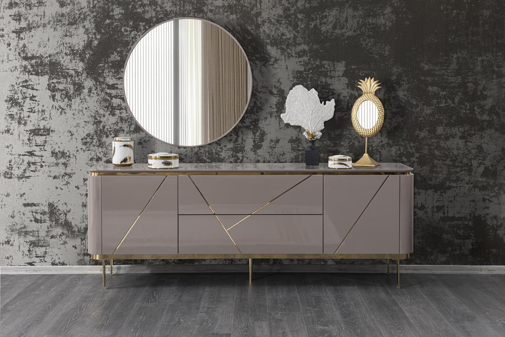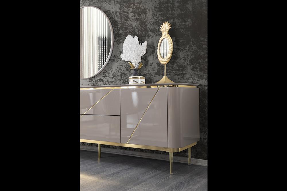 Konsol MDF malzeme üzeri delüx lake boya ile üretilmiştir. CNC desenler ile dekore edilmiştir. Ayaklar metal malzemedir.
