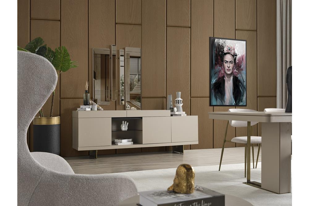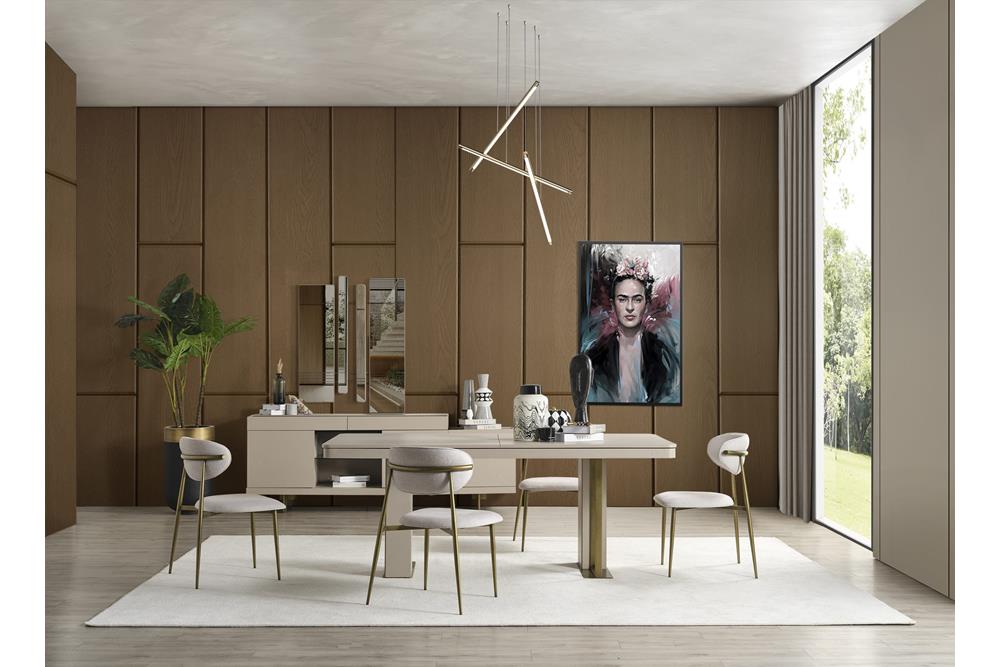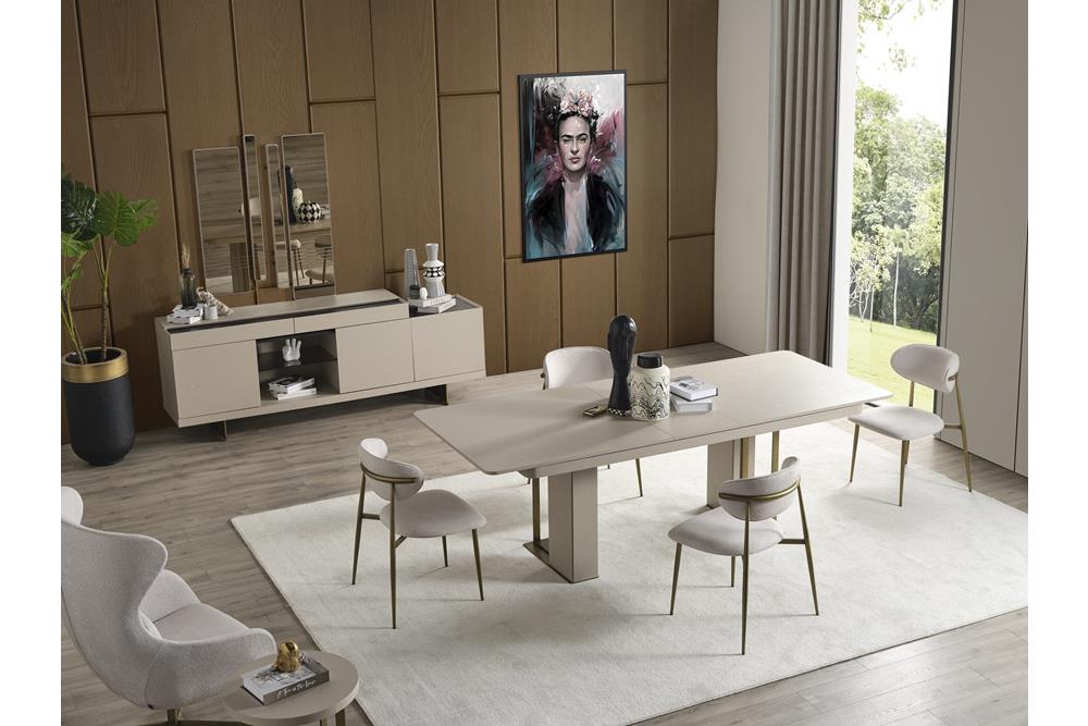 Frida Yemek Odası Takımı İnegöl’de üretilmektedir. Takım içeriği şu parçalardan oluşmaktadır;