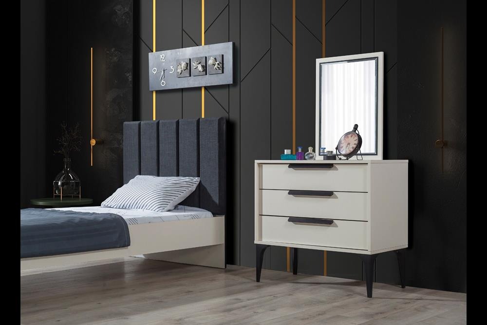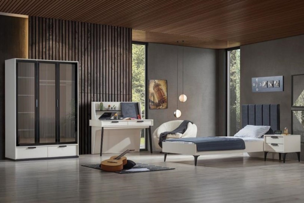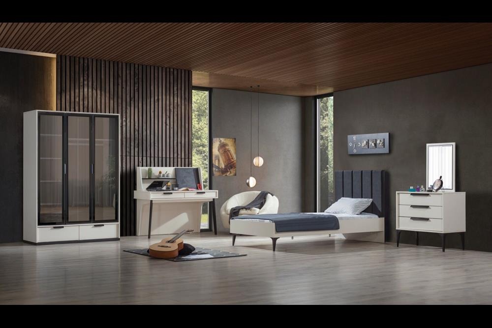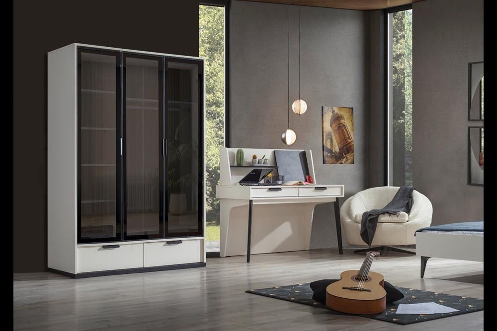 Takım içeriği: 1 adet 3 kapılı dolap, 1 adet çalışma masası ve 1 adet karyoladan oluşmaktadır.