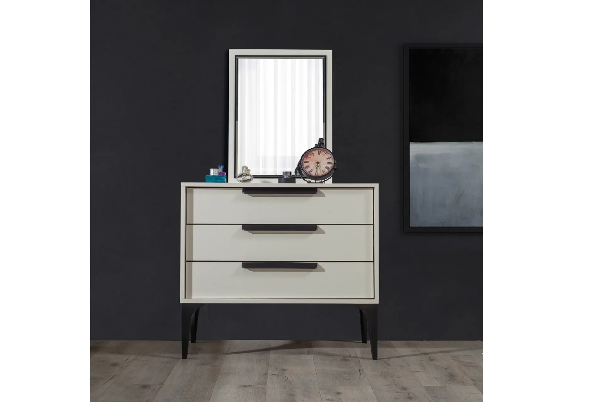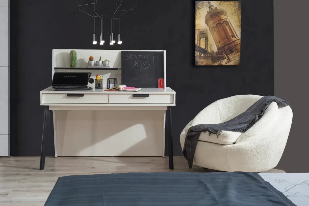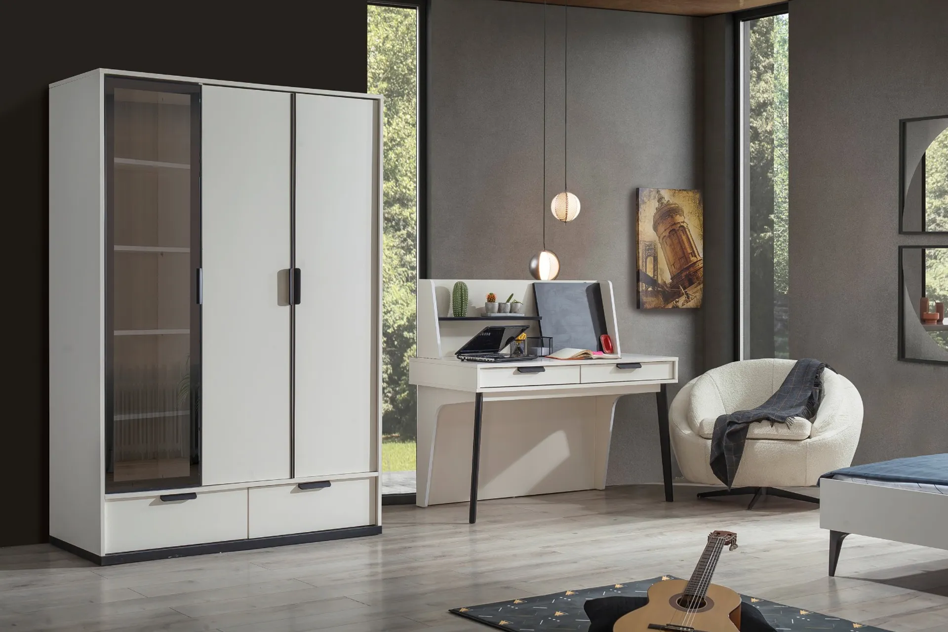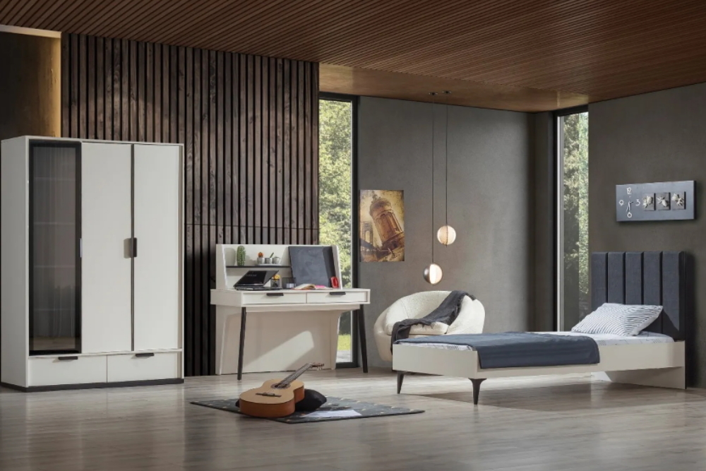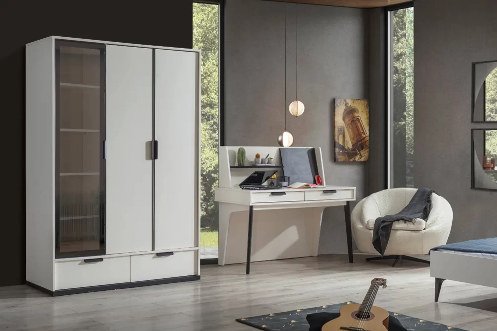 Takım içeriği: 1 adet 3 kapılı dolap, 1 adet çalışma masası ve 1 adet karyoladan oluşmaktadır.