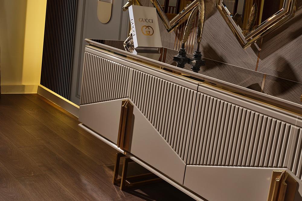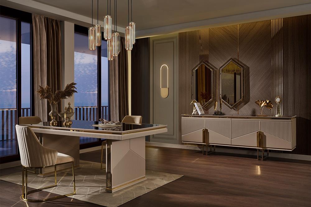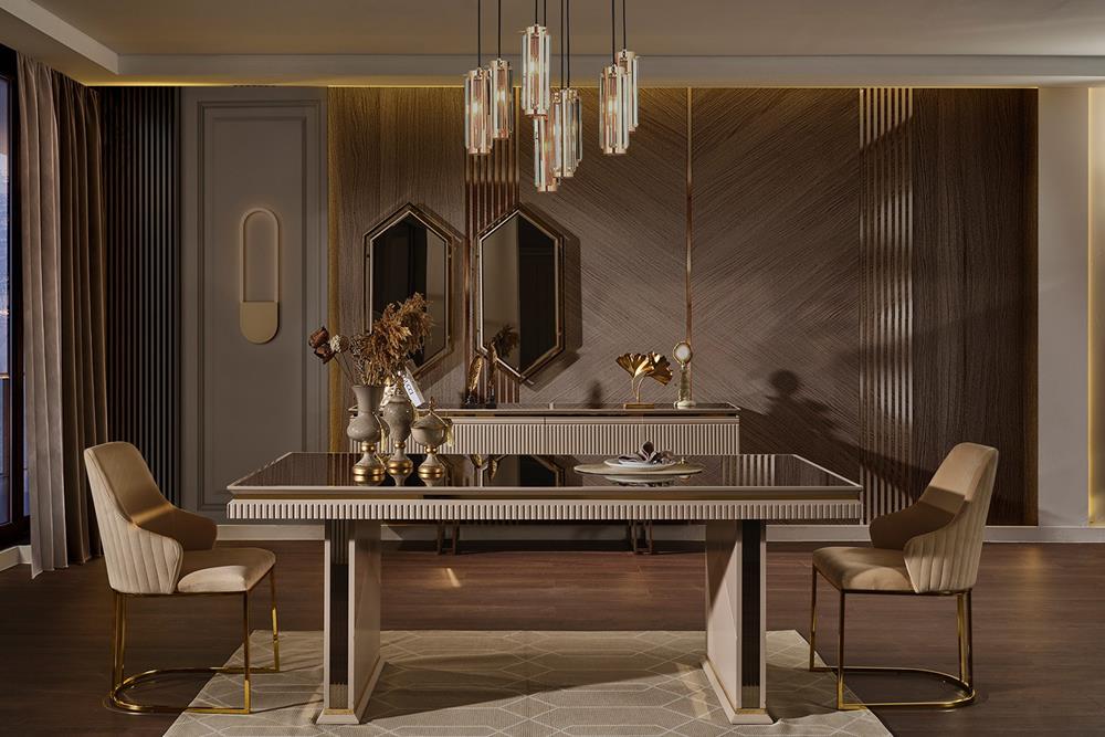 Takım içeriği: 1 adet sabit yemek masası, 6 adet sandalye, 1 adet konsol ve aynadan oluşmaktadır.