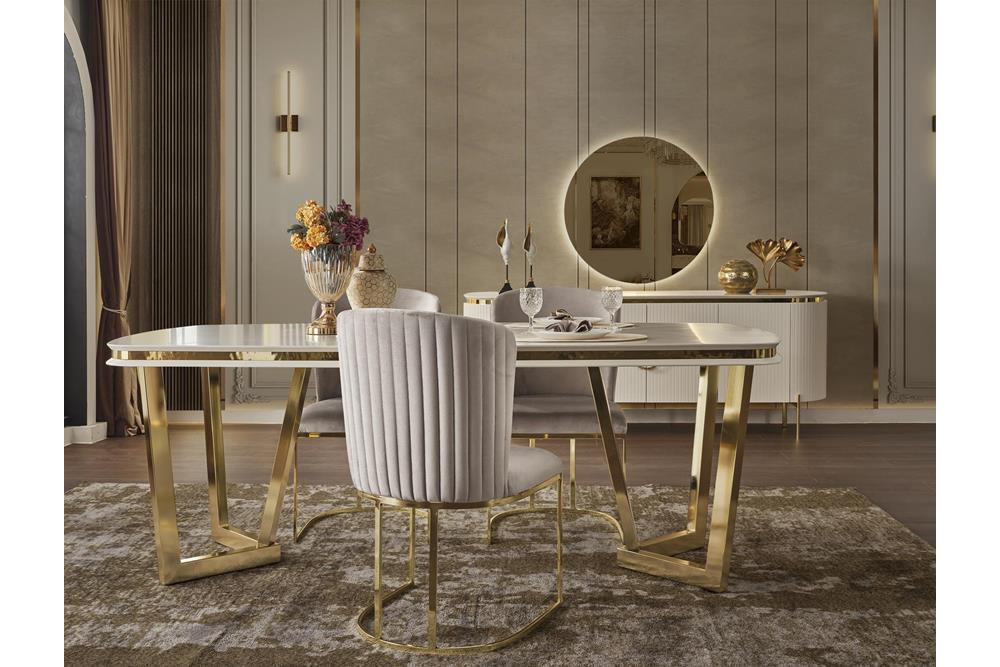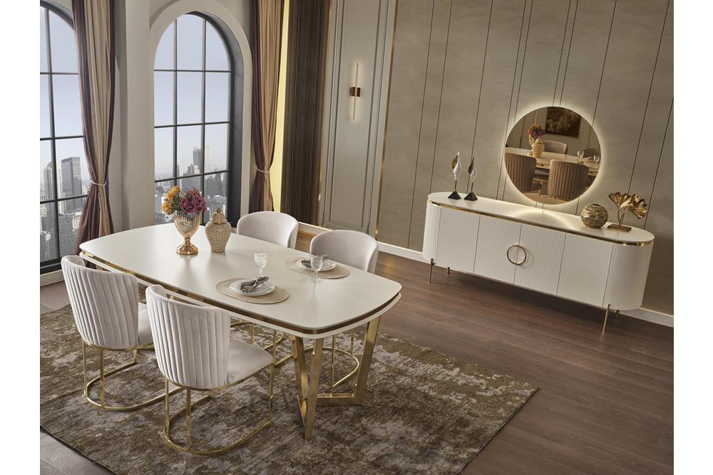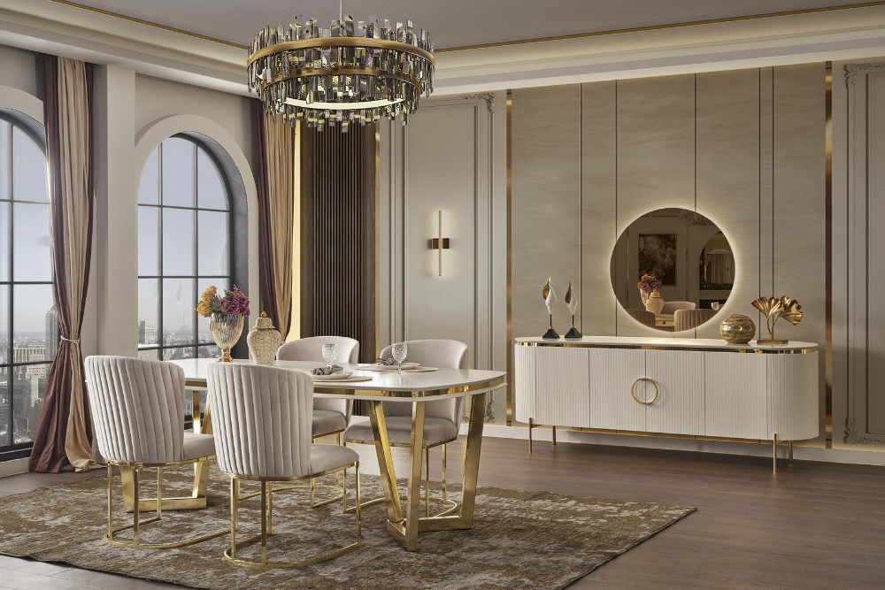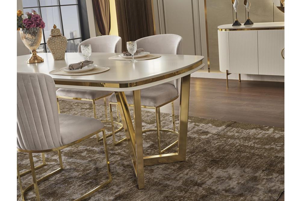 Tesla Modern Luxury Yemek Odası Takımı; ince işçilik, zarif dokunuşlar ve sağlam yapısıyla İnegöl’de üretilmektedir.