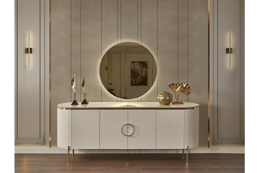 Takım içeriği;1 adet konsol ve aynası, 1 adet yemek masası, 6 adet sandalyeden oluşmaktadır. Tv ünitesi ve orta sehpa opsiyonel olarak satışa sunulmuştur.